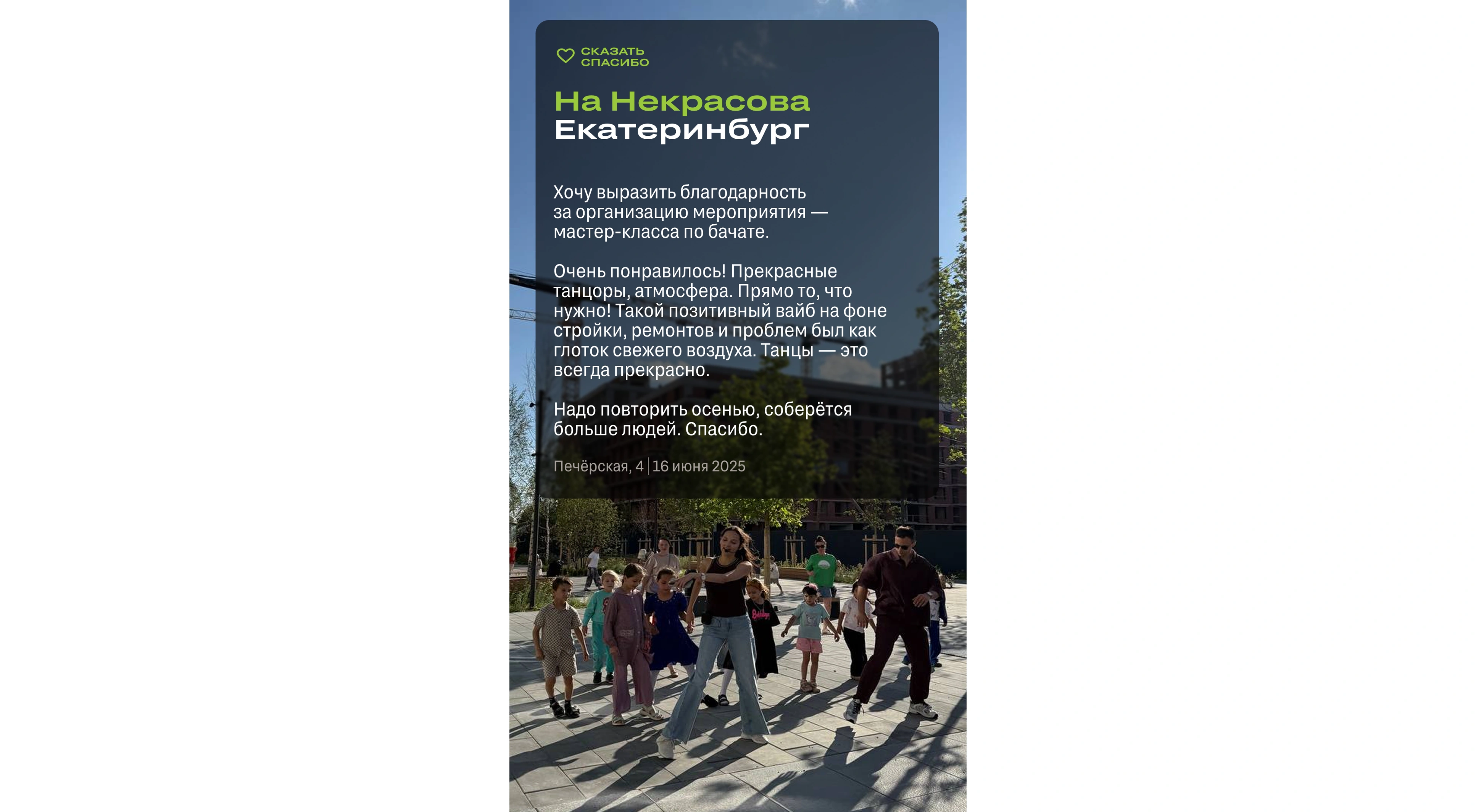 Вы можете сказать спасибо в нашем приложении или оставить отзыв в 2ГИС.